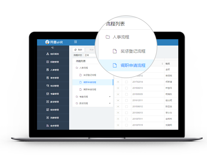 流程隨需配置向導,輕松實現(xiàn)人事、財務、行政等復雜流程邏輯;流程的已辦、待辦、辦結、超時、督辦、催辦、委托辦理一目了然;個人的請假、加班、簽卡、調休、就餐、領用品、車輛申請、合同續(xù)簽、班次調整、績效考核、培訓、錄用、離職、調職、返職、請假、加班、簽卡、調休、調薪等申請、批準、審核辦公管理流程[+詳細介紹]